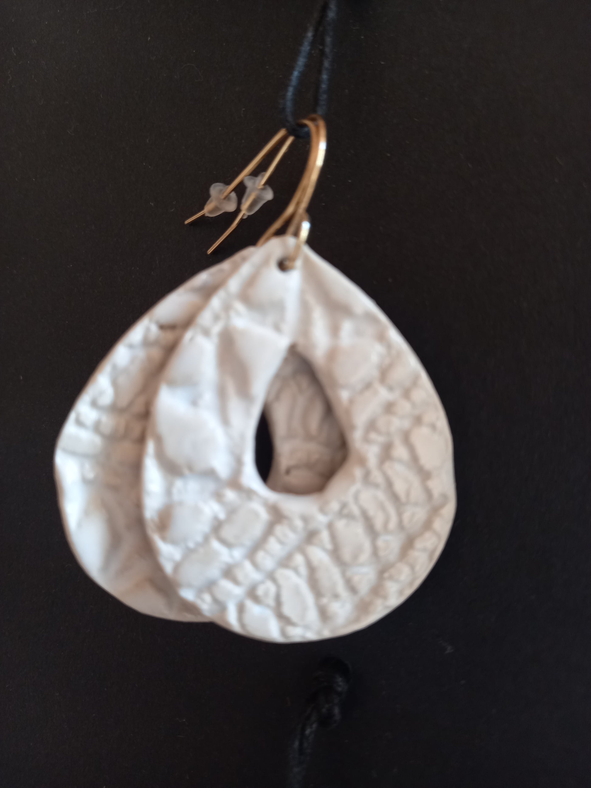 Ces boucles d'oreilles sont composées en grès blanc émaillé.